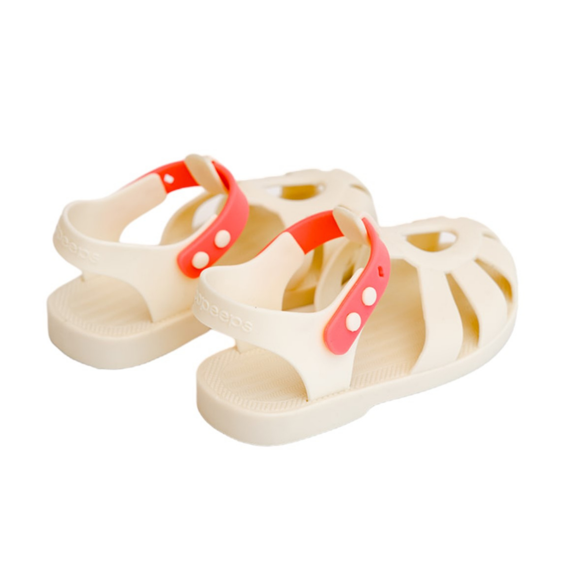 We love these sandals! Pale yellow paired with bright neon watermelon gives this style all the sweet feels.