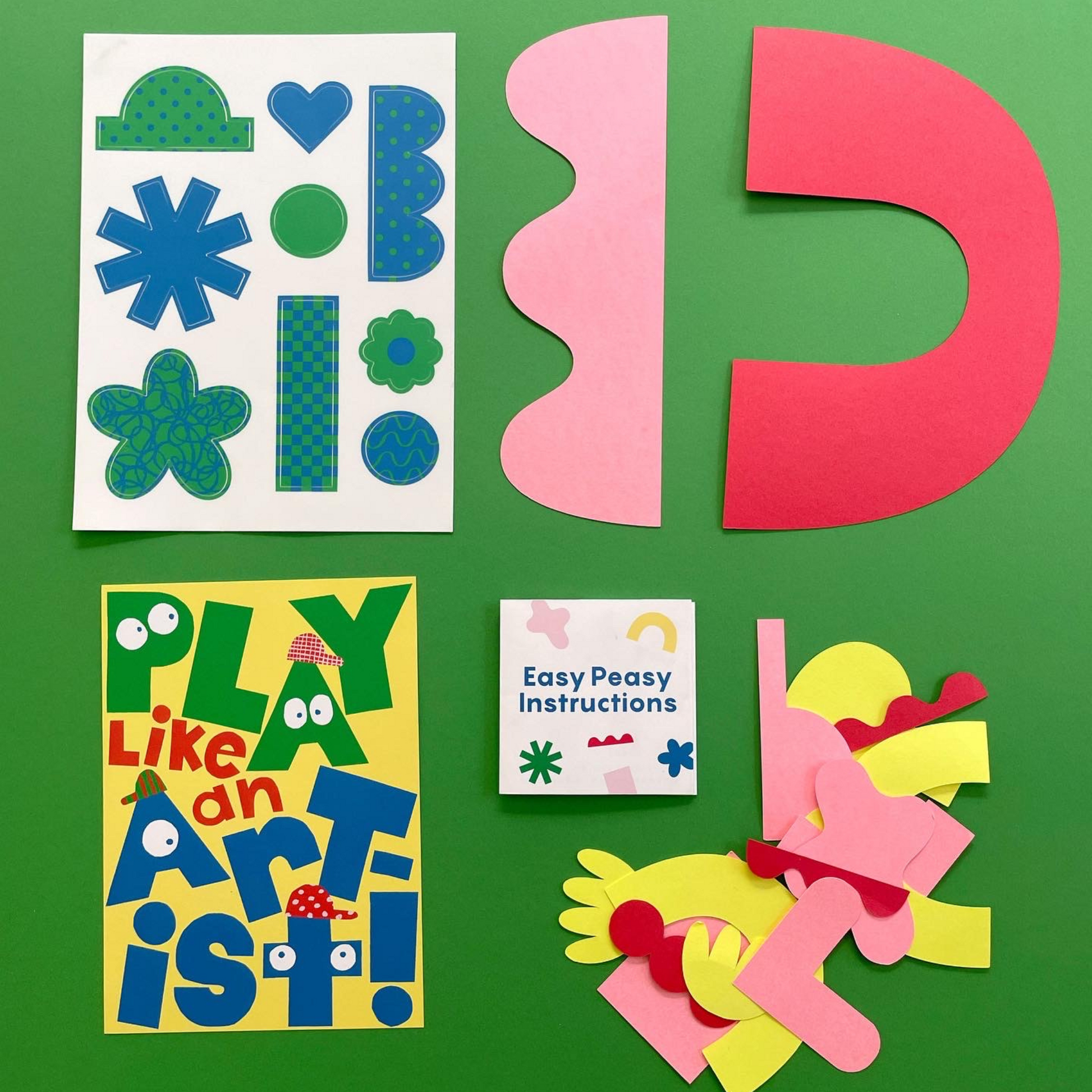 The Extra Shapes Collage Kit is designed to spark your child’s imagination (or yours)! It contains 1 sticker sheet, 20 fun collage shapes, a piece of paper to collage on, and some fun prompts to get your creativity kicking. The aim is open-ended exploration and a museum-worthy piece of art!