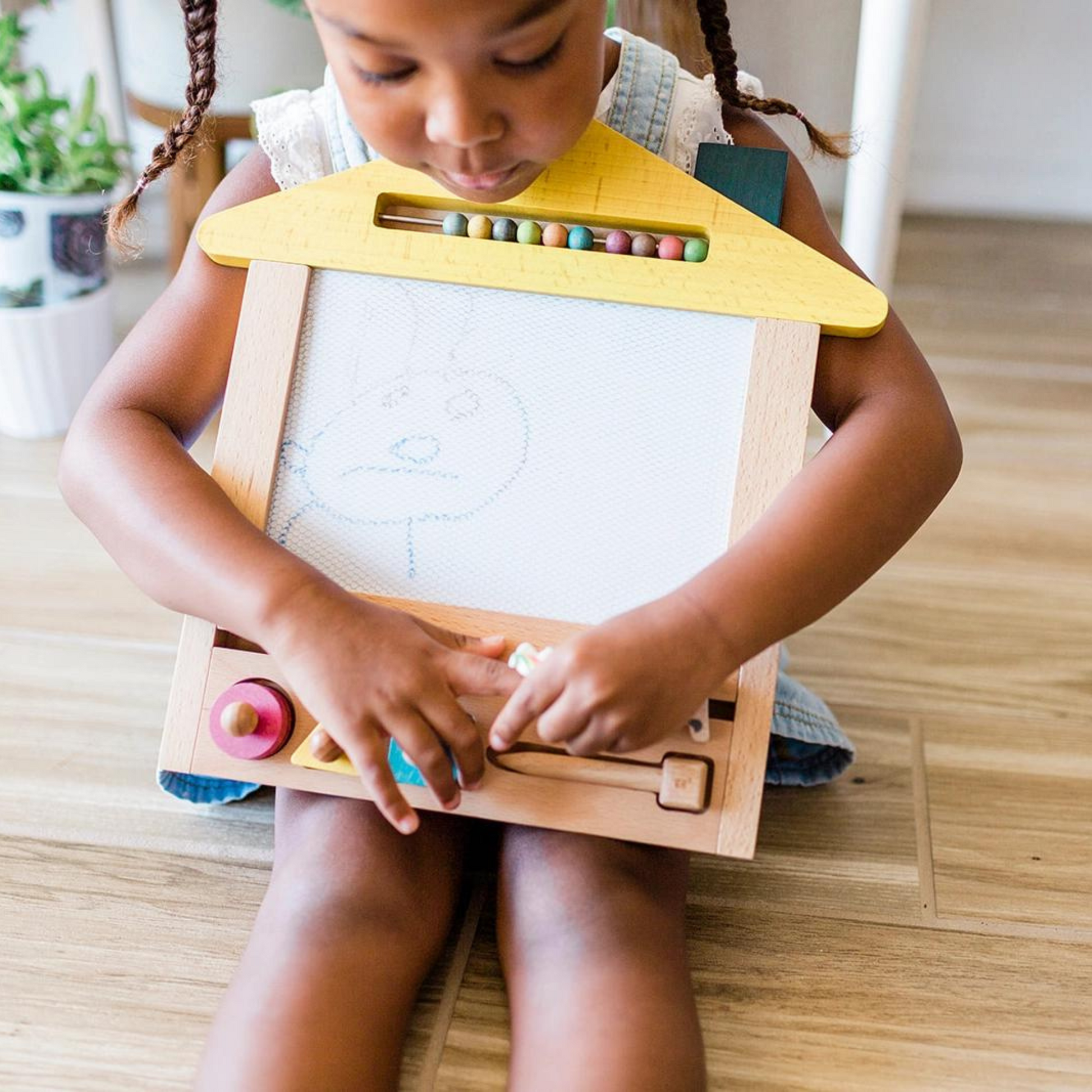 No messy paints or crayons to clean up (aaaah!) Pretty enough to keep magnetic masterpieces on display. Replaceable drawing screens, stamps and pens = better for the environment and longer usage! Sustainably-sourced beech wood and all natural wooden stains. Loved by kids all over the world for over 10 yrs!